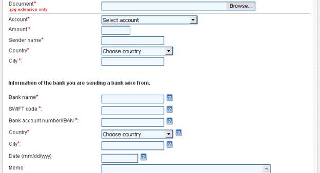 You have to state your PM account to be funded, the transfer amount, the name of the sender, the name of the country and the city. You need to also provide the details for the bank that will originate the transfer, and to attach a scanned copy of your ID document (passport or driving license).